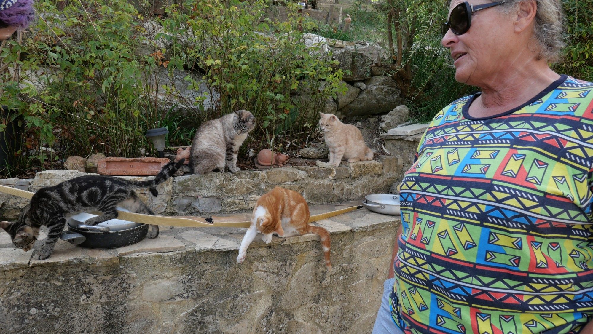 Nos recibieron Ulrike, Fabian (su hijo) y Sara. También nos recibieron su perro y sus diez gatos. Pronto supimos que Ulrike es la dueña del terreno y gestora del negocio principal de alojamiento y Fabian se encarga de mantener y gestionar la parte arquera. Los tres trabajan en la hacienda en varias facetas y, sin duda, es un trabajo constante para tener toda esa enorme propiedad operativa. Hay un campo de lavanda y olivos y frutales por buena parte de la finca.