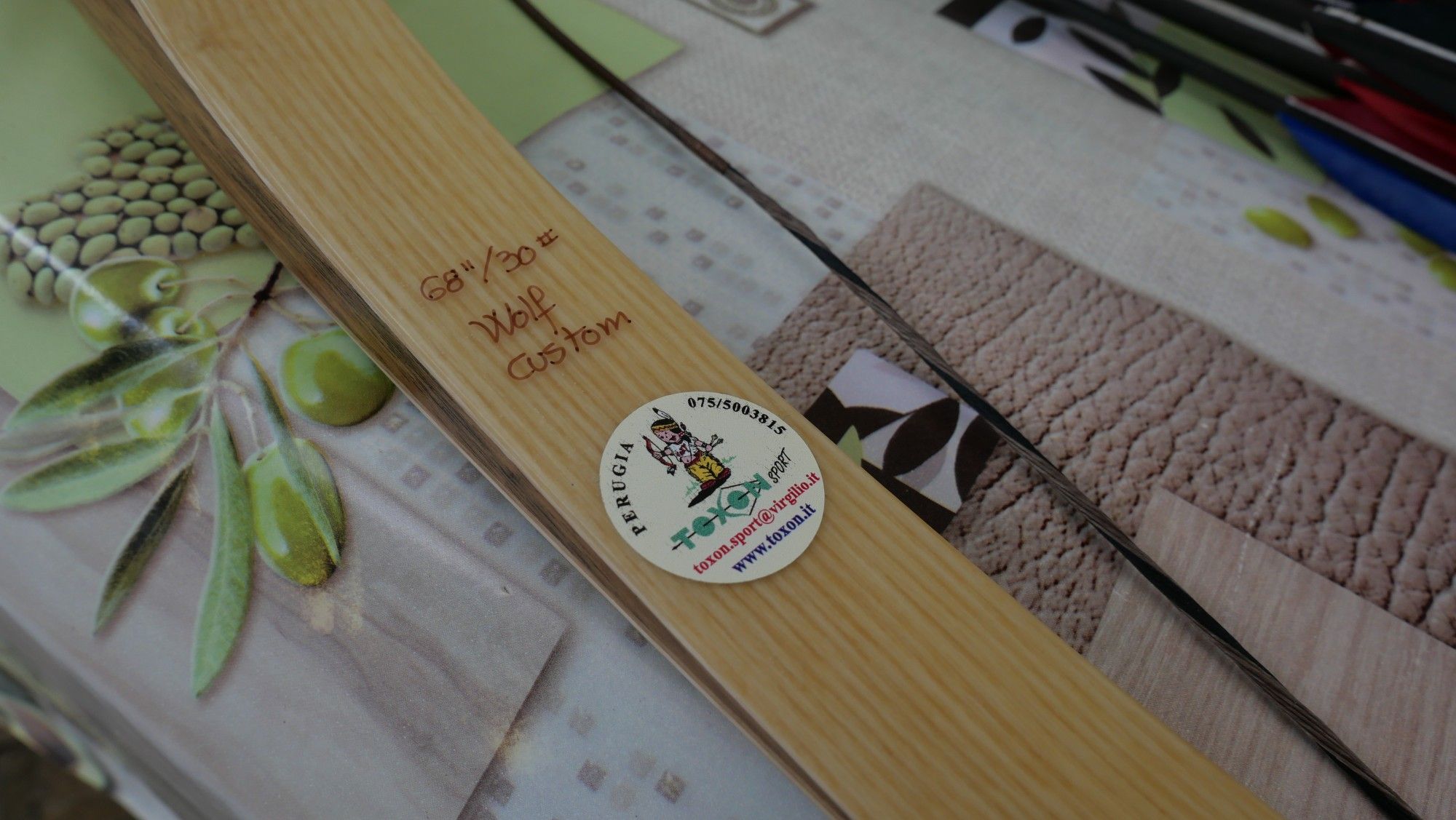 Contactamos con Chianti 3D, el campo de este resort agroturístico Podere Val Verde, en Castellina in Chianti, y Ulrike, la dueña de la finca, nos dijo que no tenía arcos apropiados para nuestro nivel, solo takedowns de iniciación. Aquí es cuando nos líamos la manta a la cabeza y decidimos comprar un arco en una tienda italiana, seis flechas para cada uno y enviarlo todo a este resort. Ulrike nos sugirió la tienda de Toxon Sport, en Peruggia y rápidamente contactamos a su vez con Enrico, su gestor. Tras intercambiar algunos correos con arcos disponibles o casi disponibles con nuestras especificaciones, acordamos comprar un Ragim Wolf Custom de 68" y 30# con seis flechas de carbono sencillitas pero con pluma natural para cada uno. Este arco es un flatbow muy socorrido para primeros longbows modernos (es un flatbow moderno). Tenía un precio contenido podríamos compartirlo. Angela lo notaría un poco fuerte y yo un poco flojo. Suficiente para disfrutar de una jornada de flechas sin más pretensión que pasarlo bien y conocer a gente.