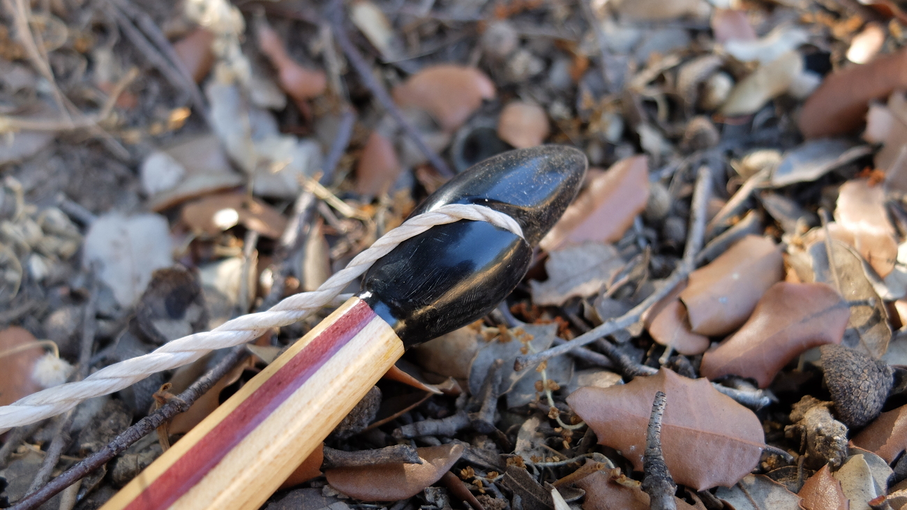 Las flechas que uso son las mismas que con mi Falco de 35 libras. Dado que uno es un arco de 35 libras "rápido" y otro de 40 libras "no tan rápido" me pareció que las flechas de uno deberían poder funcionar razonablemente bien en el otro. Y sí, hasta ahora los vuelos erráticos se han debido más a un mal punto de ennoque que al spine o peso de la flecha. En eso sí noto exigencia por parte del arco. Encontrar el punto de ennoque de la flecha con una altura determinada respecto de la mano en donde se apoya la flecha es un aspecto crítico para un buen vuelo de la flecha. En lugar de teorizar, lo mejor es simplemente ir probando hasta dar con un resultado consistente y satisfactorio. Para ello, ya que es un arco sin ventana, es muy importante colocar la mano del arco siempre de la misma manera, usando alguna referencia del cuero de la empuñadura, por ejemplo.