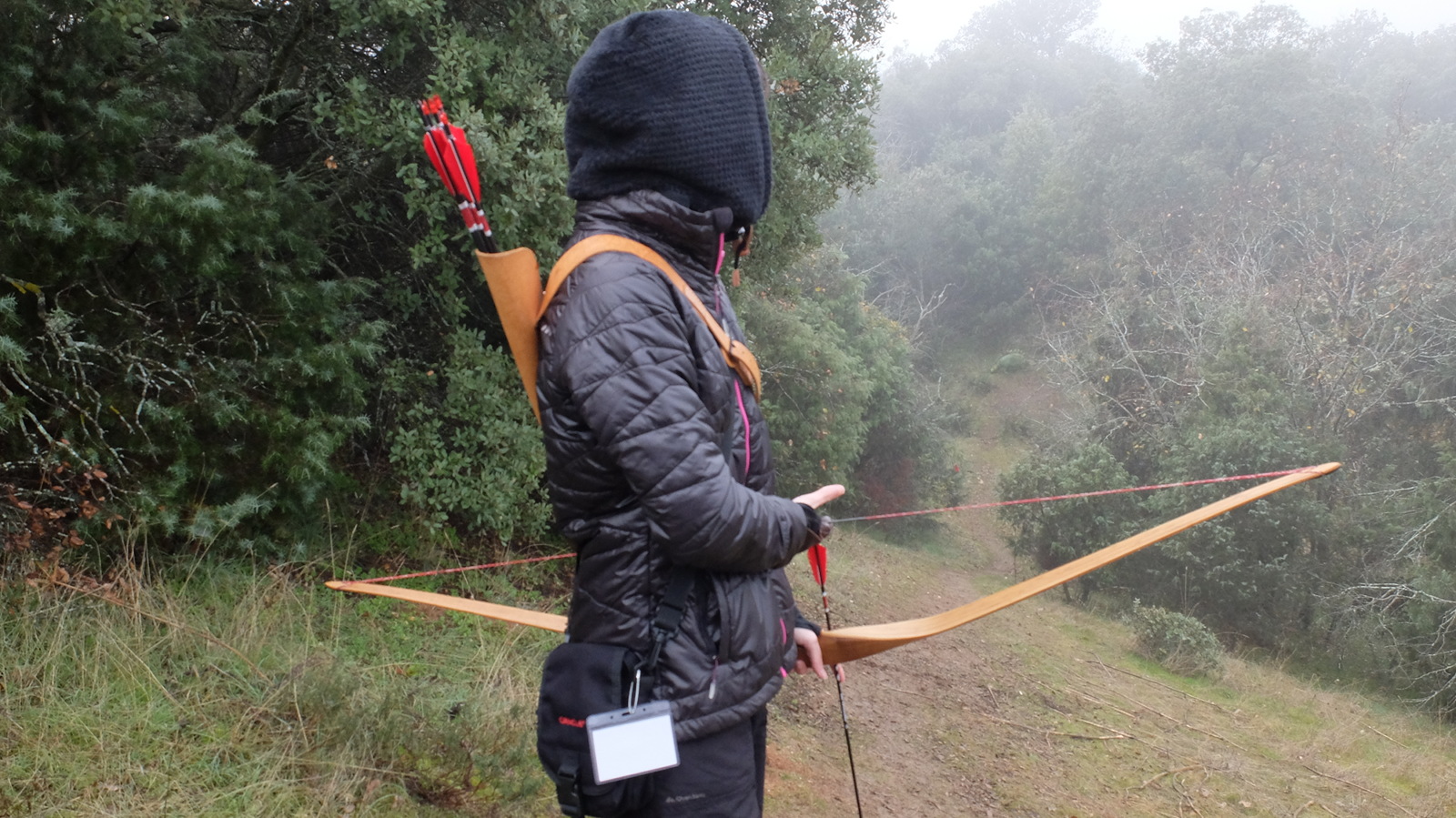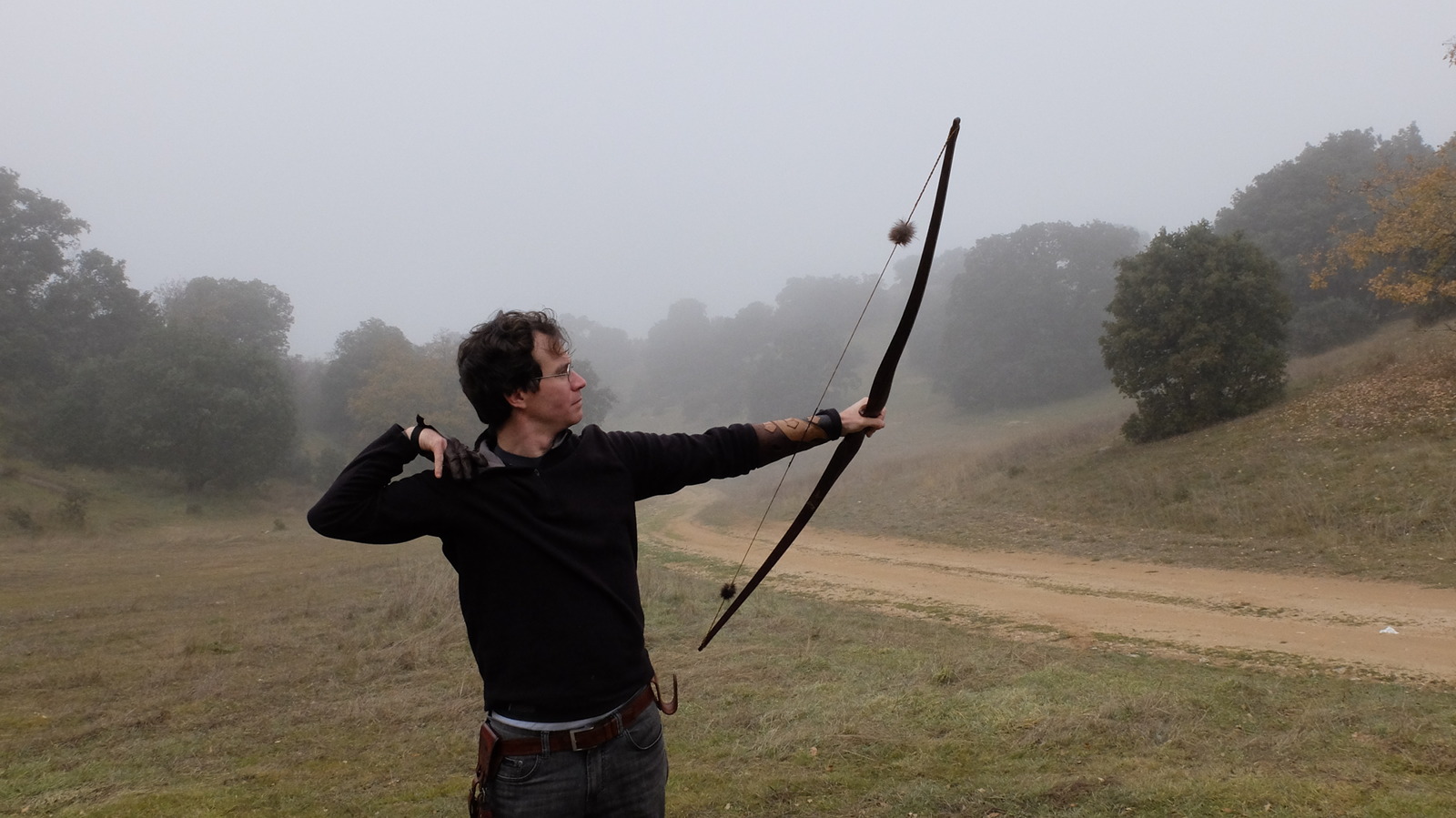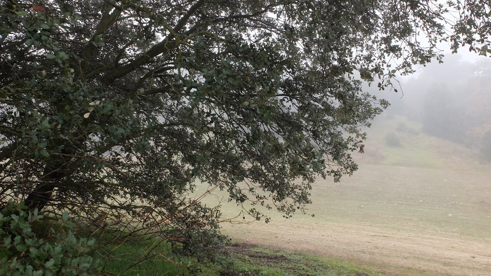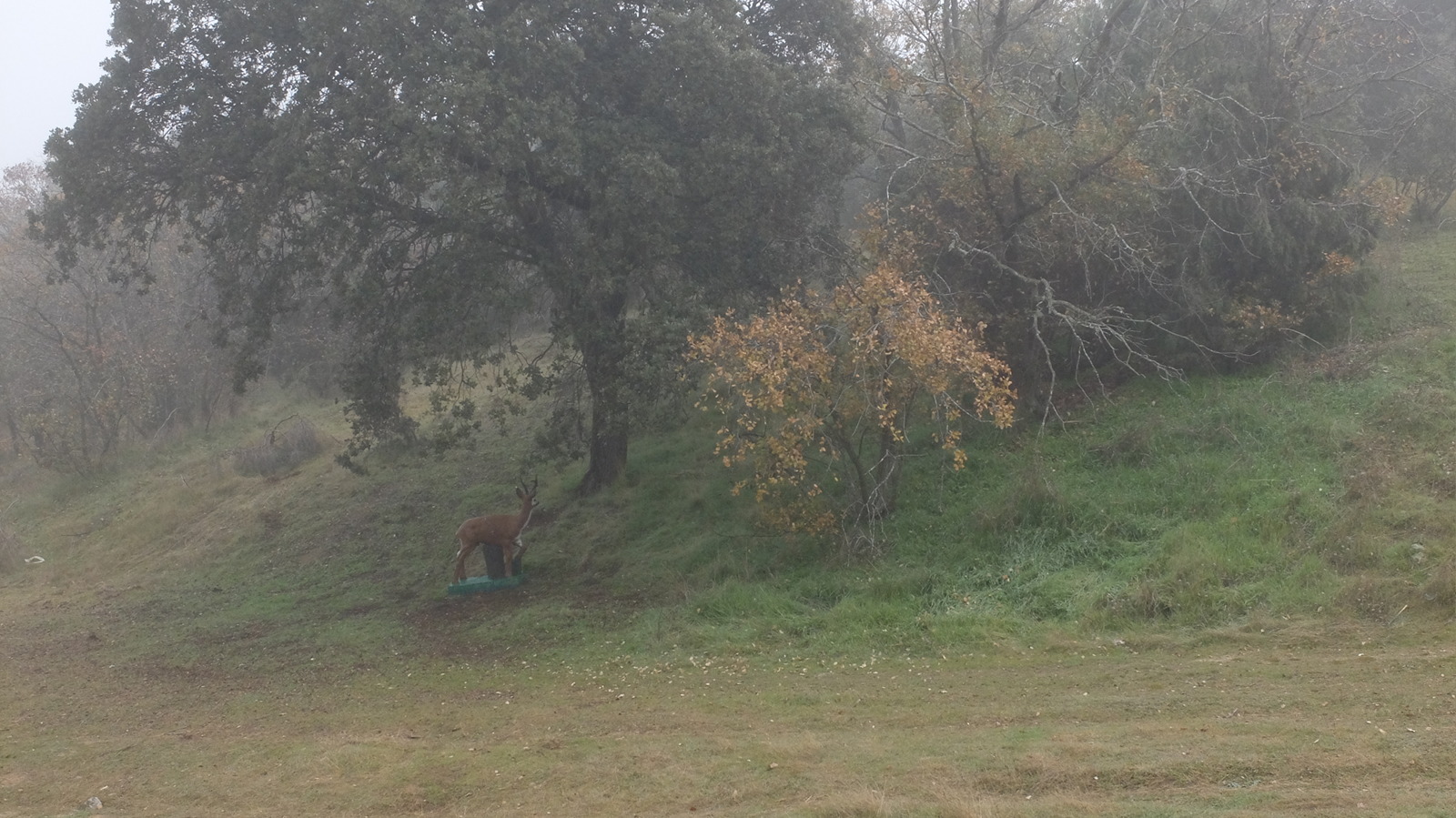 La ausencia de luz directa creo que en general ayudó. El sol, sobre las 12, empezó a verse como un pálido círculo más semejante a una luna llena que a otra cosa. Cuando miraba a los silenciadores de pelo de castor de mi arco antes de abrirlo podía distinguir casi cada uno de los pelos con nitidez. En lugar de una vista "plana", todo lo que estuviera a menos de 10-15 metros tenía una gran definición y aunque más allá una diana pudiera estar tras un velo de niebla, se percibía mucho mejor toda la silueta sin que el ojo tuviera que esforzarse lo más mínimo.