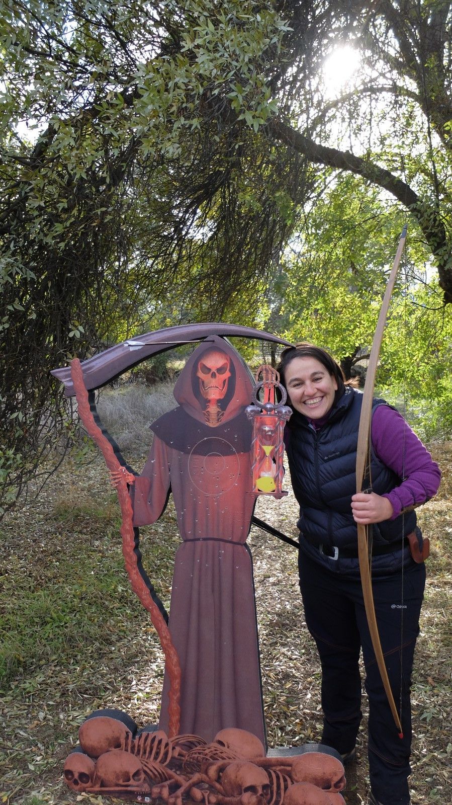 Seguimos disfrutando de la soledad del recorrido hasta que llegamos a la diana de la Muerte, en donde Yamila, pensando como yo, que la diana era el cráneo y no el "corazón", colocó una flecha casi en el vértice de la capucha en un tiro precioso.