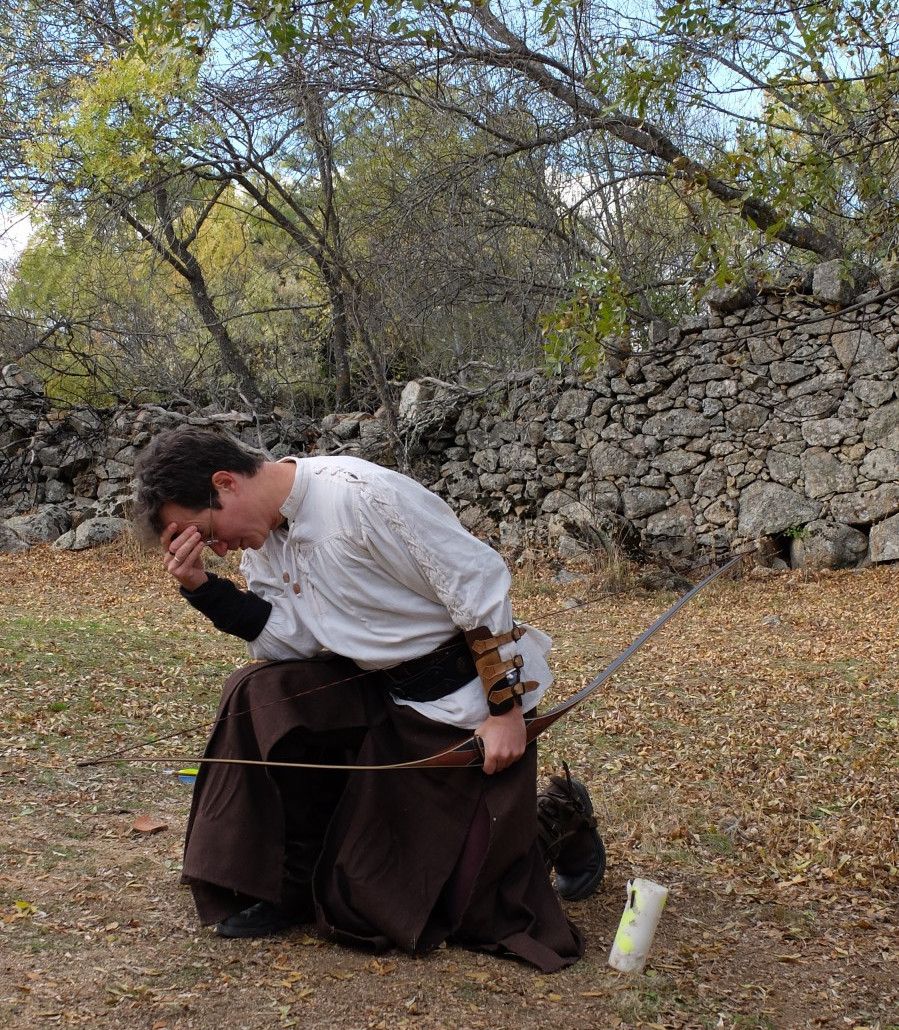 La última propuesta de la jornada era un "vaciado de carcaj" ya que en la laguna del campo habían dispuesto creo que hasta cinco dianas en donde por primera (y última) vez valía con impactar. Algunas de estas dianas merecía la pena tirar arrodillado, de ahí que una de las fotos de la jornada me sorprenda en esa posición.