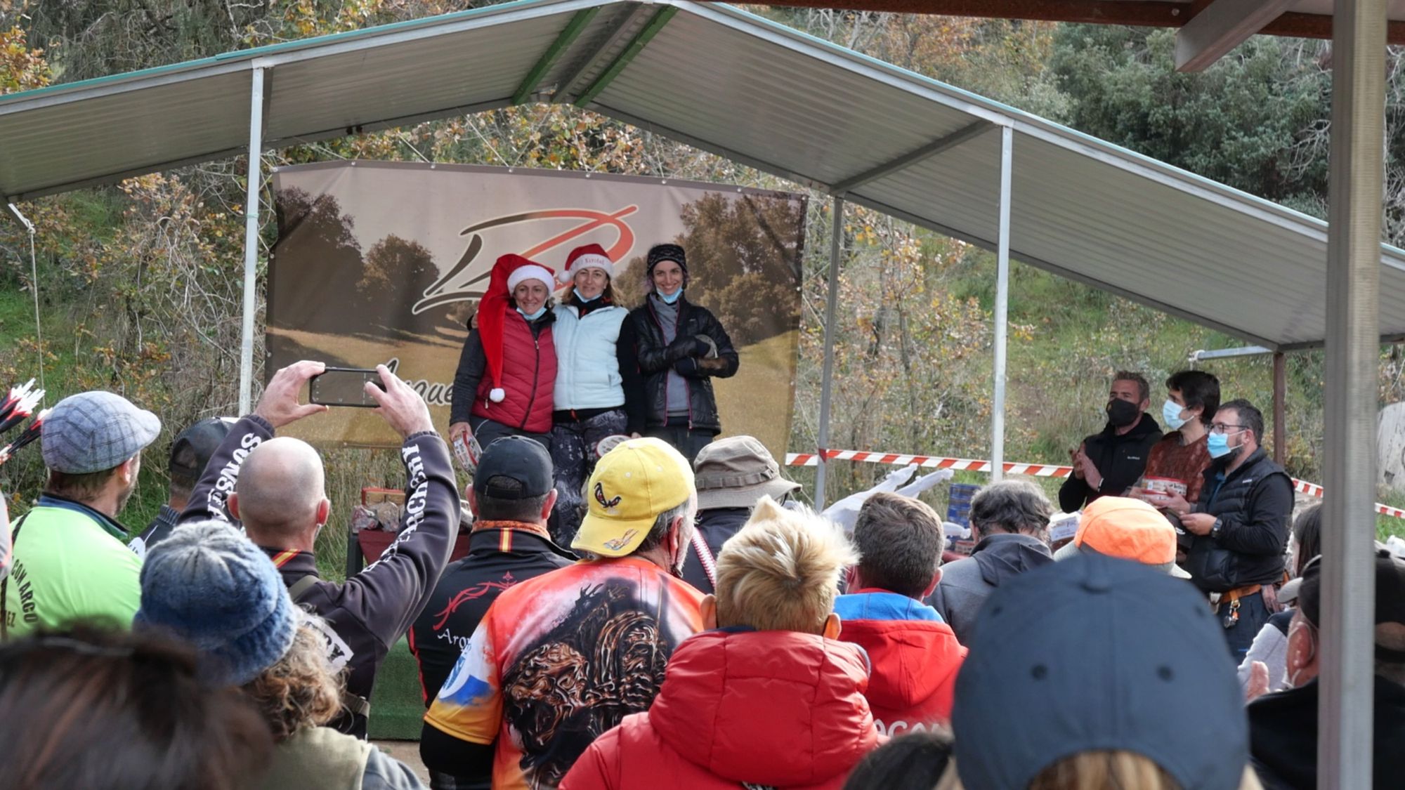 Cuando todo el mundo que tenía que subir a recoger algún premio bajó del podio comenzó la super-rifa navideña en donde Arqueros de Madrid reparte infinidad de detalles navideños. Desde pulseritas hasta jamones pasando por cestas de frutas o bombones. Con nuestros papelitos en mano chillábamos angustiosos "¡uuuyyyy!" a cada número cantado. Yo creo que un tercio de los asistentes se llevó algo pero hasta esto encontró su final y ya solo quedó un aplauso agradecido de todo el mundo a los organizadores y al club Arqueros de Madrid por un grandísimo día que creo que dejó a mucha gente pensando que más que el final de 2021 esto se parecía ya más al inicio de 2022.