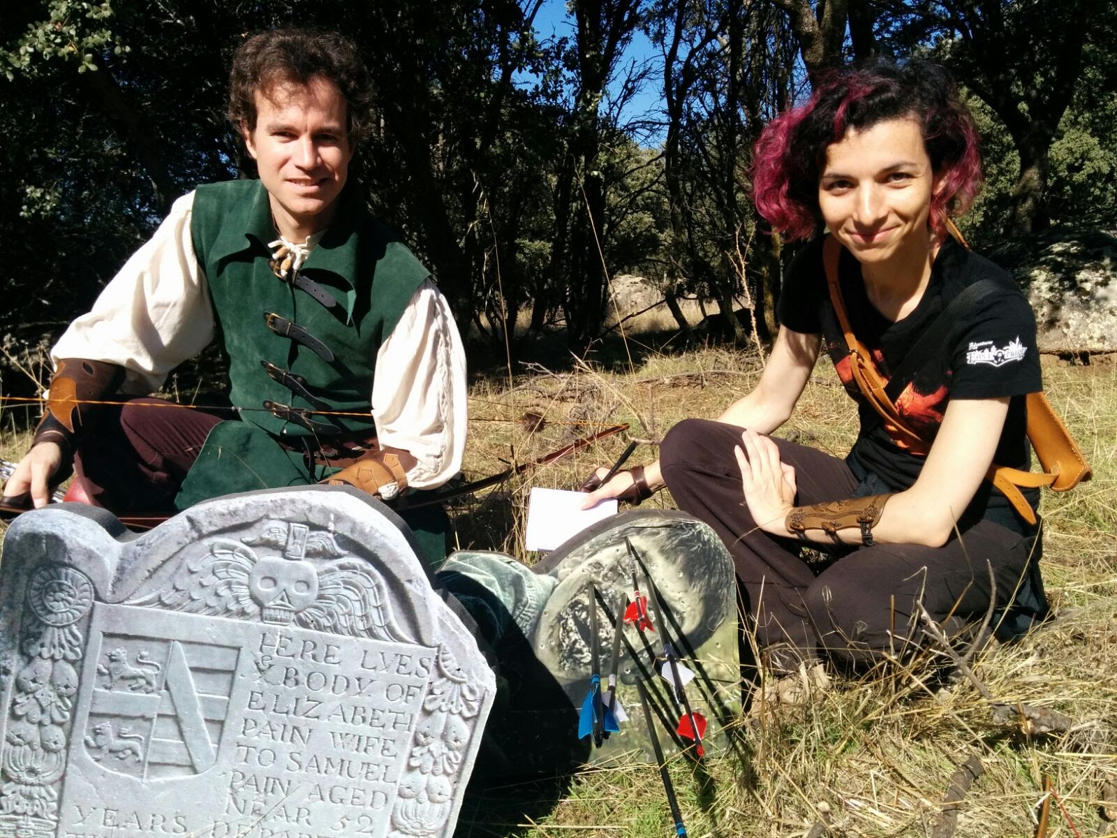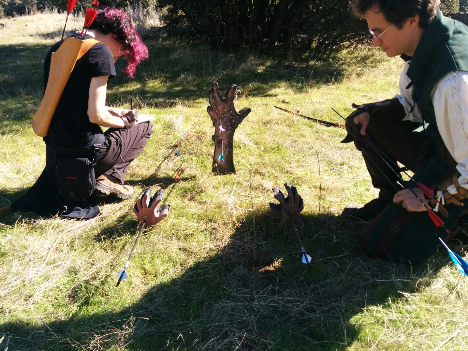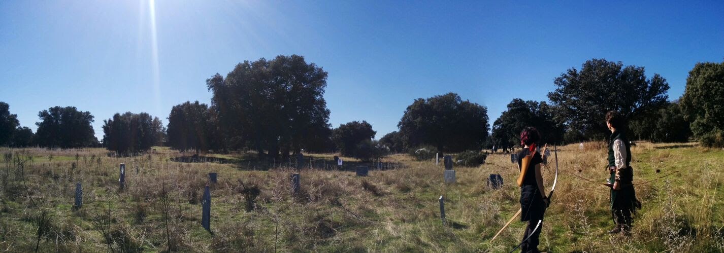 Yo creo que al final tiramos cuarenta flechas ante un conjunto muy variado de dianas. La dificultad estribaba, no tanto en sortear ramas a mitad de vuelo o tener que arrodillarse sino en que las dianas estaban parcialmente tapadas por zonas problemáticas (rocas, árboles o lápidas) y en el que las zonas de máxima puntuación (las cabezas) suponían el mayor riesgo (la flecha podía irse completamente y anotar un cero).