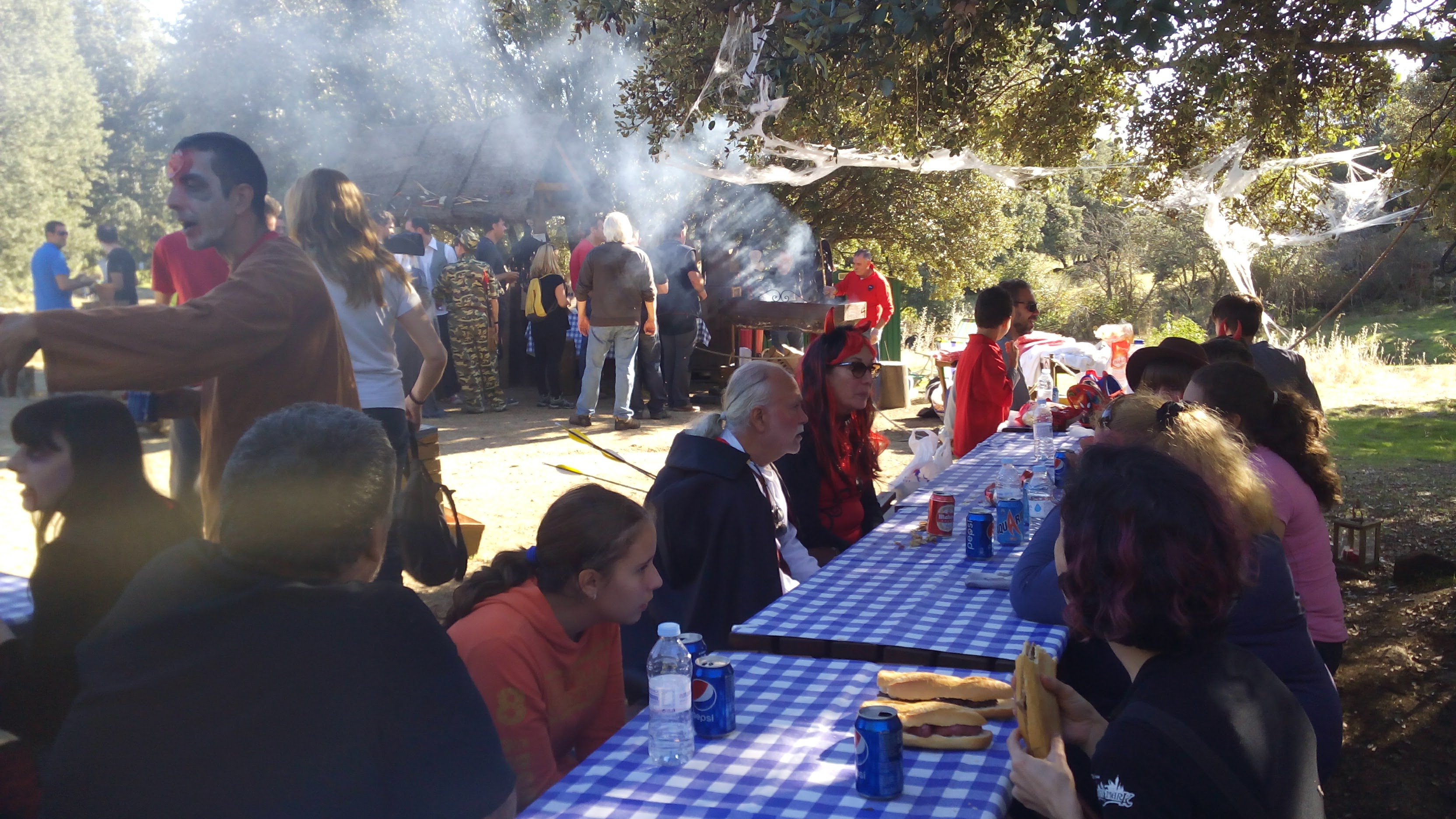 Cuando terminamos, fuimos hasta el punto de encuentro con el merendero en donde la barbacoa trabajaba a toda pastilla a base de panceta, chistorra, morcilla, lomo o pollo. Nos encontramos ahí con nuestros buenos amigos de Arcochinillo (ahora Arqueros de Gaia) que habían acudido a la convocatoria pero se habían metido en el recorrido antes de llegar nosotros. Si a eso le sumamos la compañía de Félix y Marisol tuvimos una de las mejores mesas (y sobremesas) del día. Juan ya nos había dicho adiós (tenía un cumpleaños) así que el resto del día lo disfrutamos ya solamente Angela y yo.