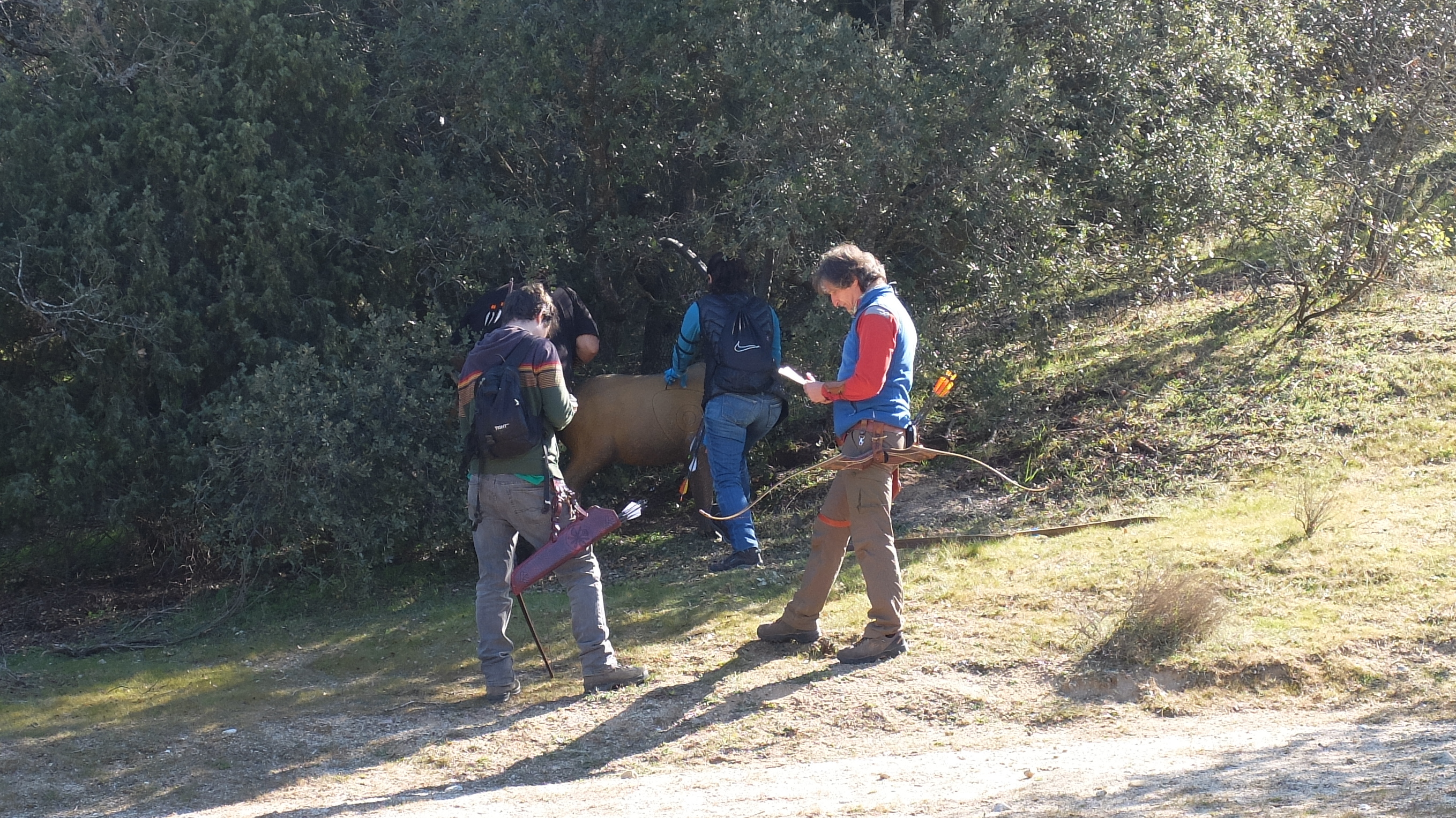 Se daba la circunstancia de que Angela y yo repetiríamos con nuestros amigos Alex y Ana, con los que coincidimos en la Tirada Especial de Navidad en diciembre. Finalmente Alex por lesión y Angela por demasiado frío, se quedaron en acompañantes de lujo y la patrulla de facto estaba compuesta por Antonio Merino, Ana, Alberto Fernández y yo. Tres recurvos y un longbow.
