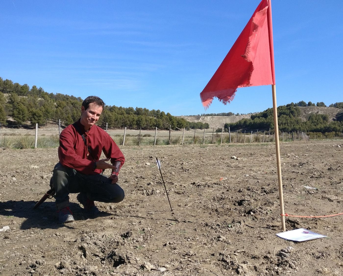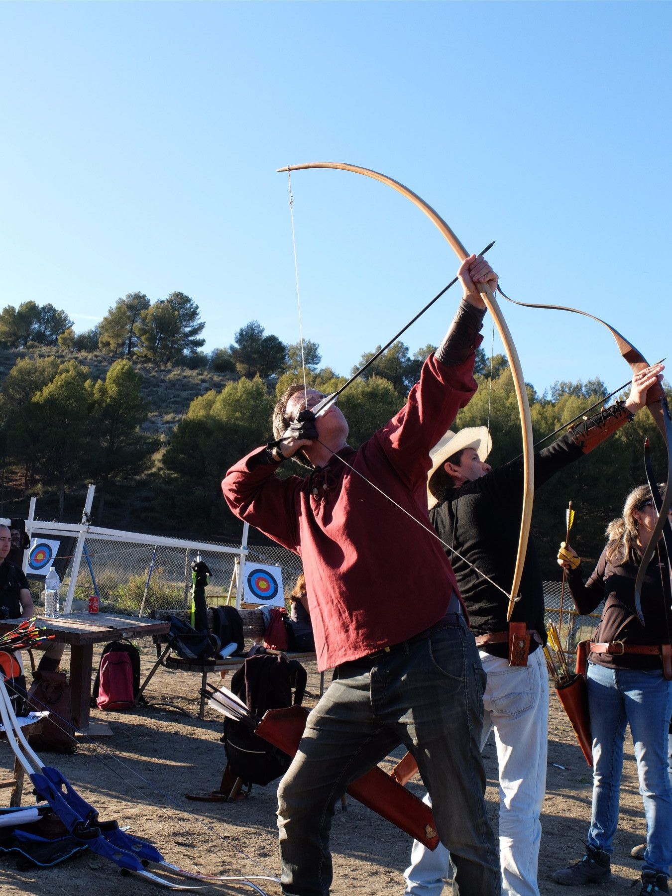 Nos poníamos en línea, abríamos el arco hasta cada punto de anclaje elegido por cada participante (algunos abrían como siempre, quizá otros abrían más), elevábamos el tiro hasta unos 35-45 grados y soltábamos la flecha para poder verla volar varios segundos hasta que desaparecía en el suelo. Con nuestra intuición de por dónde había caído, aplicábamos alguna corrección y volvíamos a hacerlo.