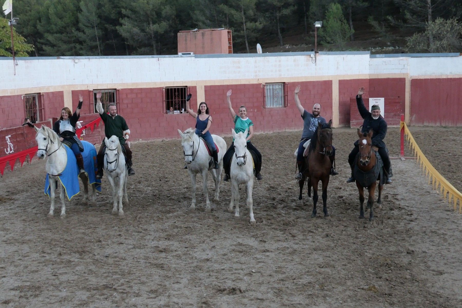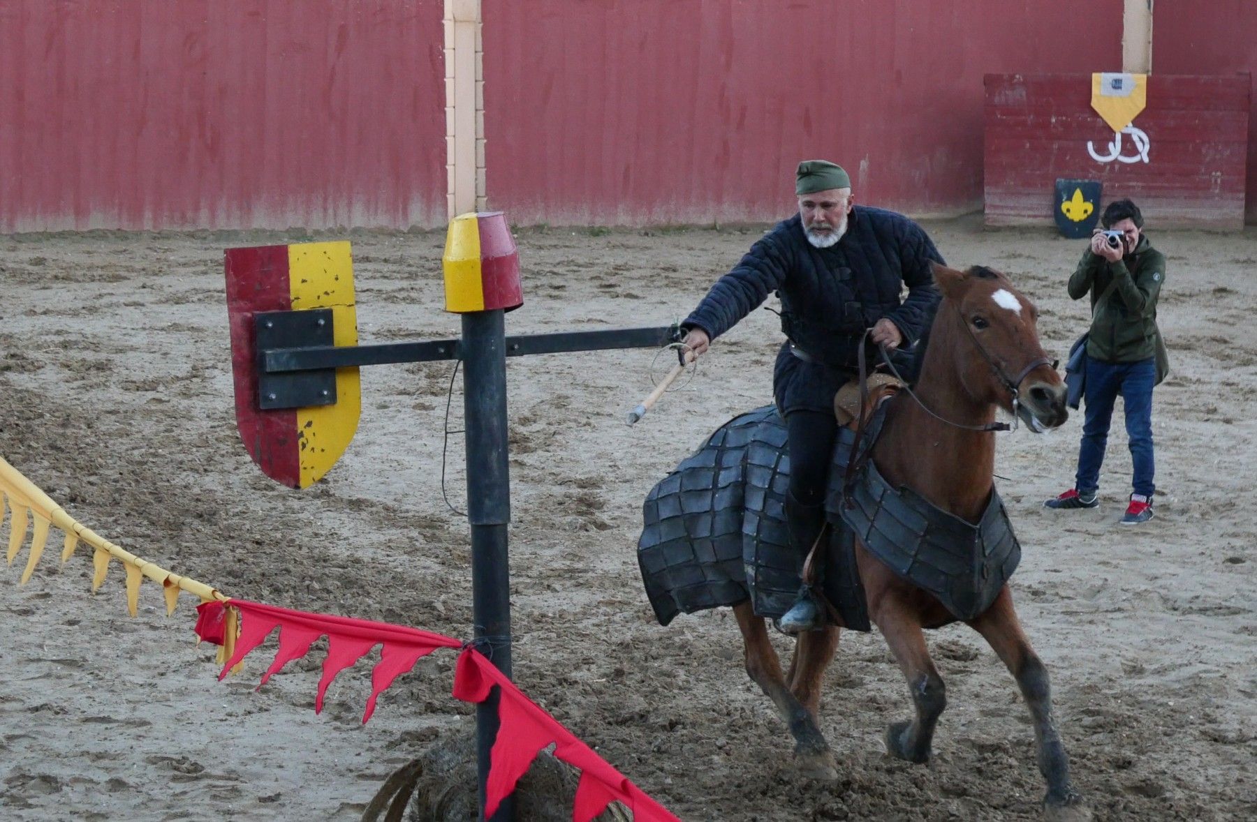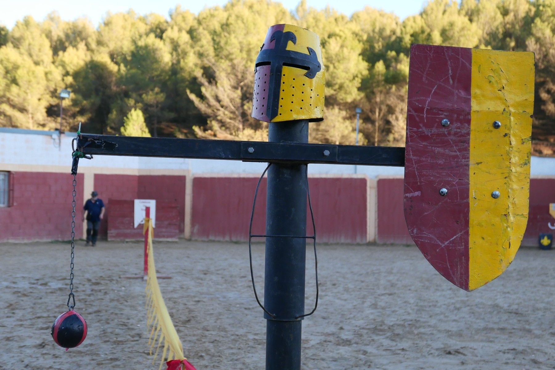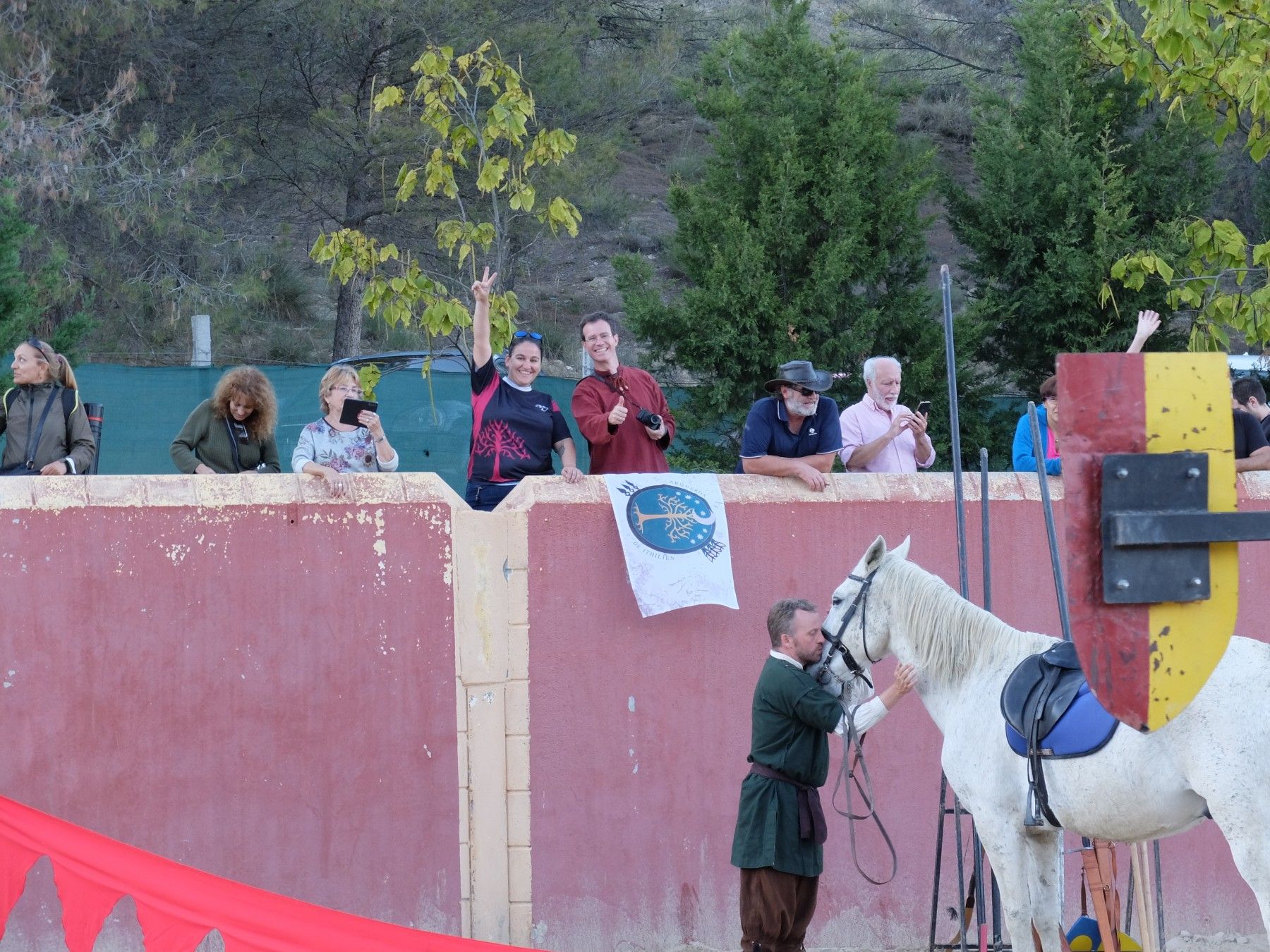 Los retrasos acumulados por la mañana pasaron factura al inicio de la comida que comenzó pasadas las 4. A cambio, la parrillada de carne se fue sirviendo con velocidad y a las cinco y media pudimos ser testigos del torneo medieval en una pequeña plaza de toros convertido en coso medieval con estafermo incluido.