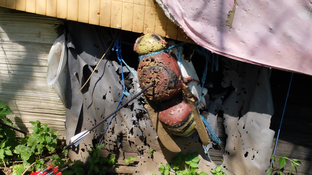 Angela disfrutó mucho del campo y también de su día como arquera. Desde luego no parecía que estuviera con el embotamiento propio de un catarrazo. Exceptuando una tendencia reciente a tener el codo un punto respingón que aumenta el riesgo de perder un cuarto de pulgada de apertura y tener una suelta menos limpia, lo cierto es que acribilló a prácticamente todo lo que se puso por delante. Hay que recordar que en este campo juegan con distancias muy largas, más incluso que las de IFAA pero nosotros optamos por tirar desde la plancha o piqueta blanca que en términos generales se parecía a IFAA o entre la roja y la azul en WA.