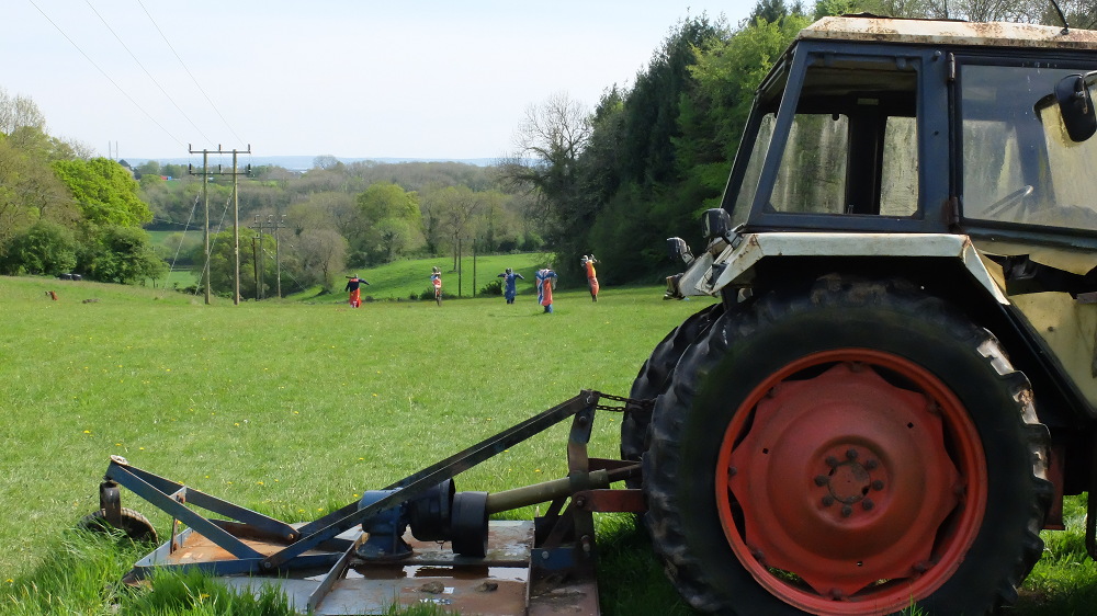 Una zona del campo, con el tractor que sirve para cortar la hierba cuando está muy alta