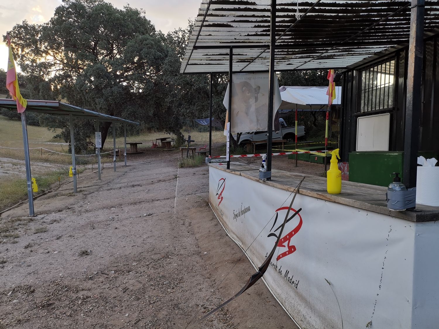 Finalmente los clubes empezaron a poder abrir para deportistas federados, co reserva previa y medidas de higiene especiales. Arqueros de Madrid nos envió una circular a los abonados y me enteré de planes semejantes en otros clubes de mi entorno. Como yo había sido muy escrupuloso con seguir todas las recomendaciones de las autoridades sanitarias, me planteé si habría algún riesgo no controlado así que me fui entre semana y a las 8 de la tarde para un primer reencuentro "controlado".