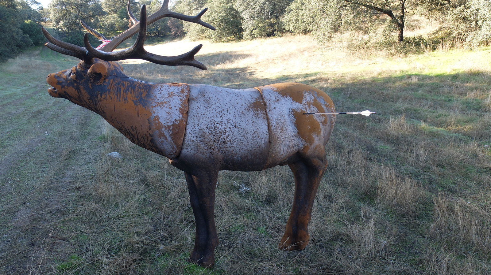 Salvo por un momento en el recorrido en que encadené tres fallos seguidos, en general me quedé muy satisfecho y obtuve un total de 128 puntos. Me quedo con dos dianas. Una de una especie de cabra ¿africana? en donde la flecha tenía que sortear una zona de desniveles engañosos y se quedó a nada de dar en el corazón tras volar totalmente recta y la de un reno a 55 metros de distancia contra el sol. En esta flecha tiré de toda mi intuición y cuando la flecha había pasado el ecuador de la parábola creí que se iría alta, pero no, oí claramente el impacto y solo después, al acercarme, comprobé que había conseguido la altura casi perfecta.