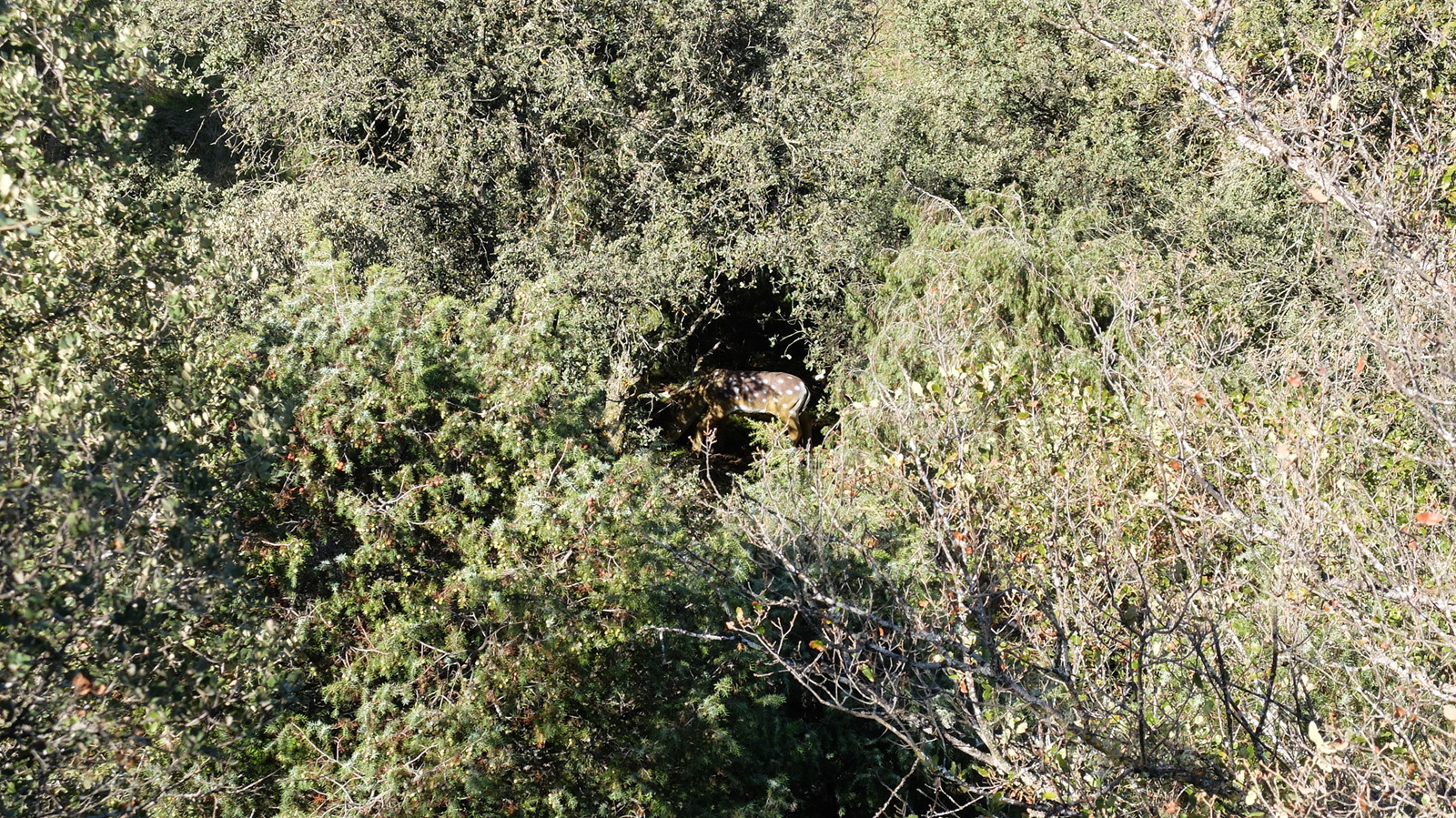 Zoom para ver, escondido, al ciervo