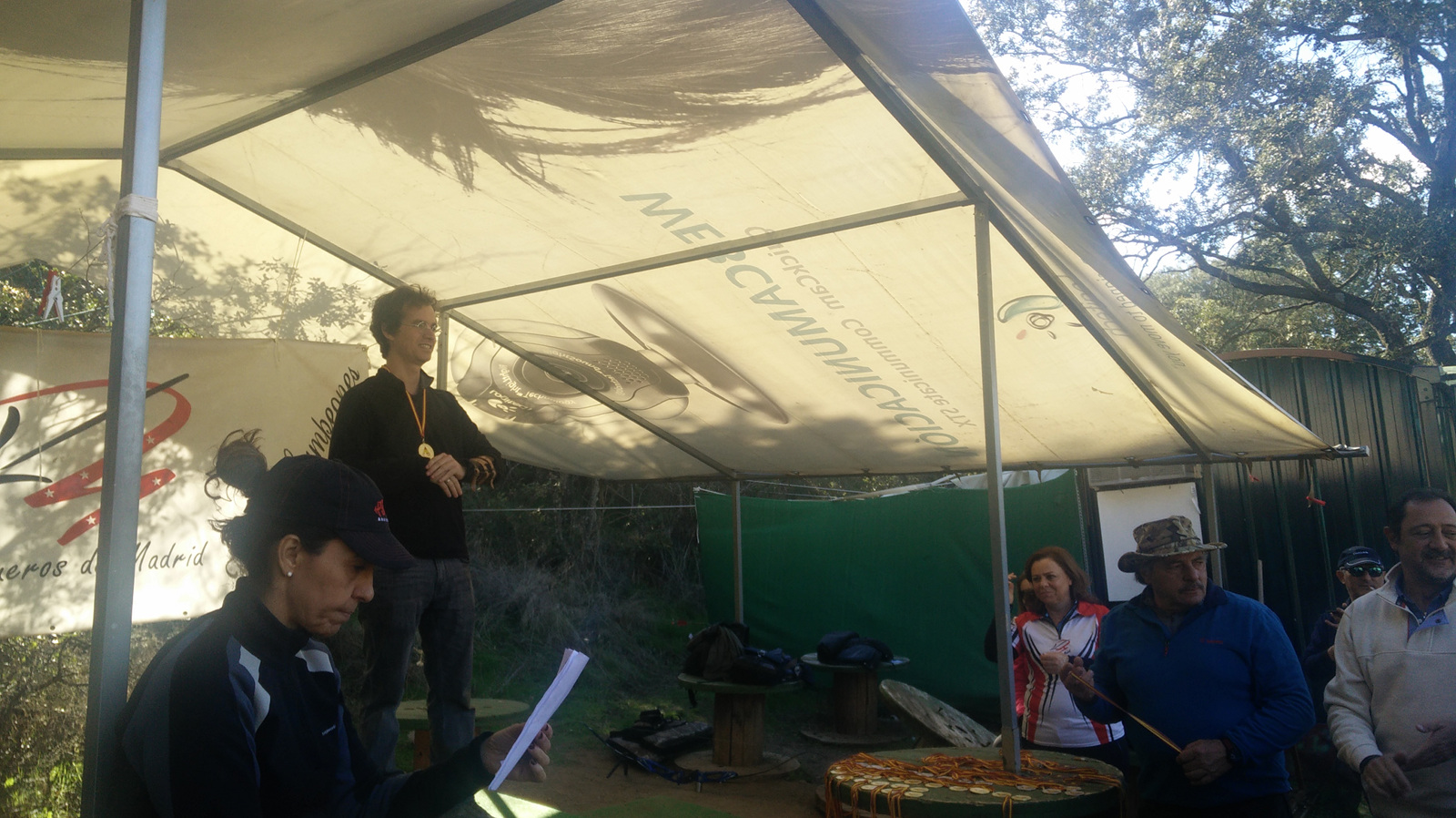 Llegó el momento de conocer los resultados y resulta que había quedado primero. Mi categoría de Longbow Senior Masculino era bastante exigua pero incluso aunque hubieran sumado a todos los Longbow veteranos (que es donde más éxito tiene esta modalidad, por lo visto) solo habría bajado un puesto, a un punto del primero, así que mis 215 puntos me valieron una medalla de oro y subir al primer cajón del podio. Angela había hecho un fantástico segundo recorrido solo por detrás de Patricia, que por cierto fue bronce en el cameponato nacional de este año, pero los 10 puntos del primer recorrido eran una carga demasiado pesada, algo a lo que ella no le dio la más mínima importancia.