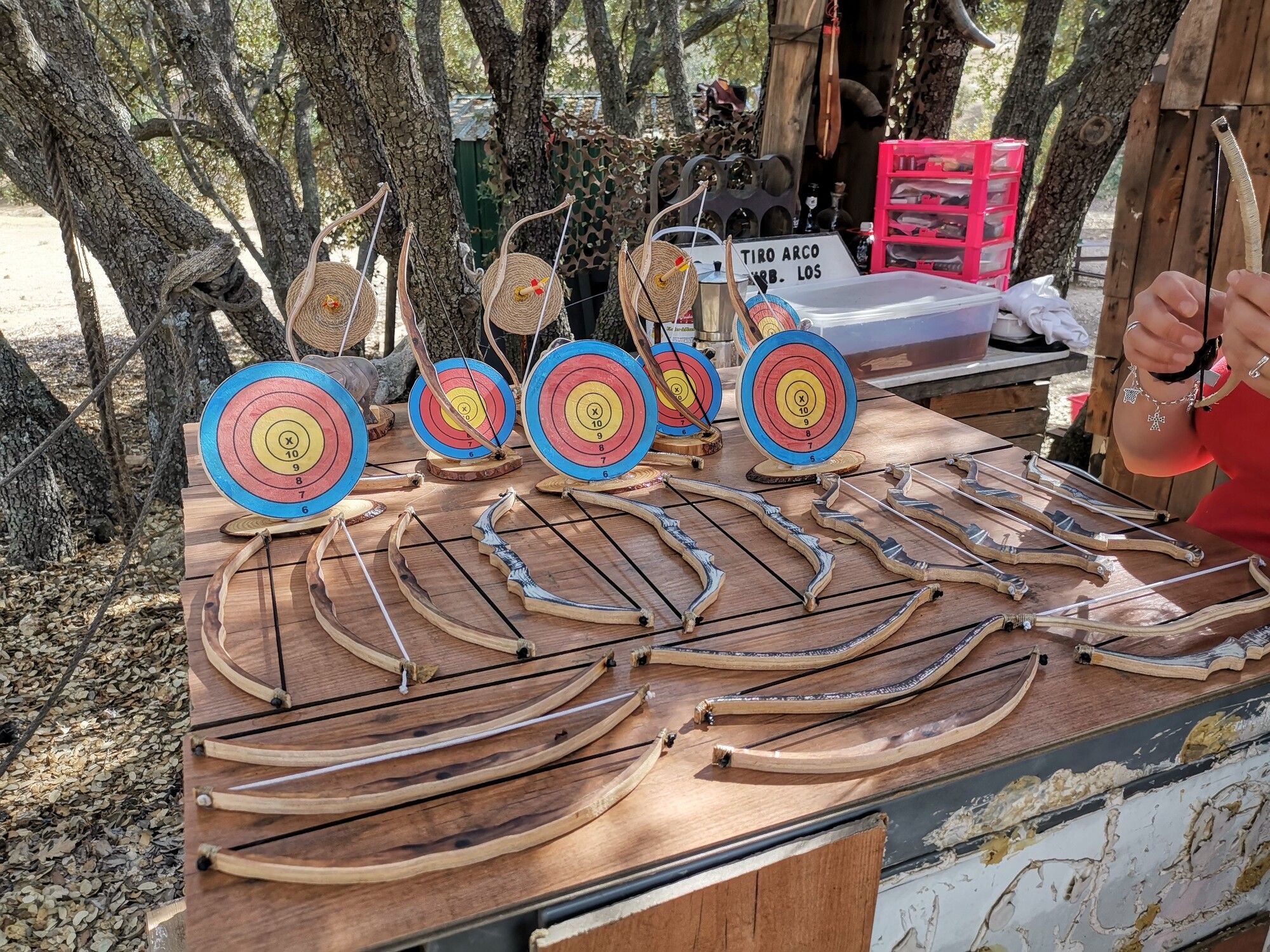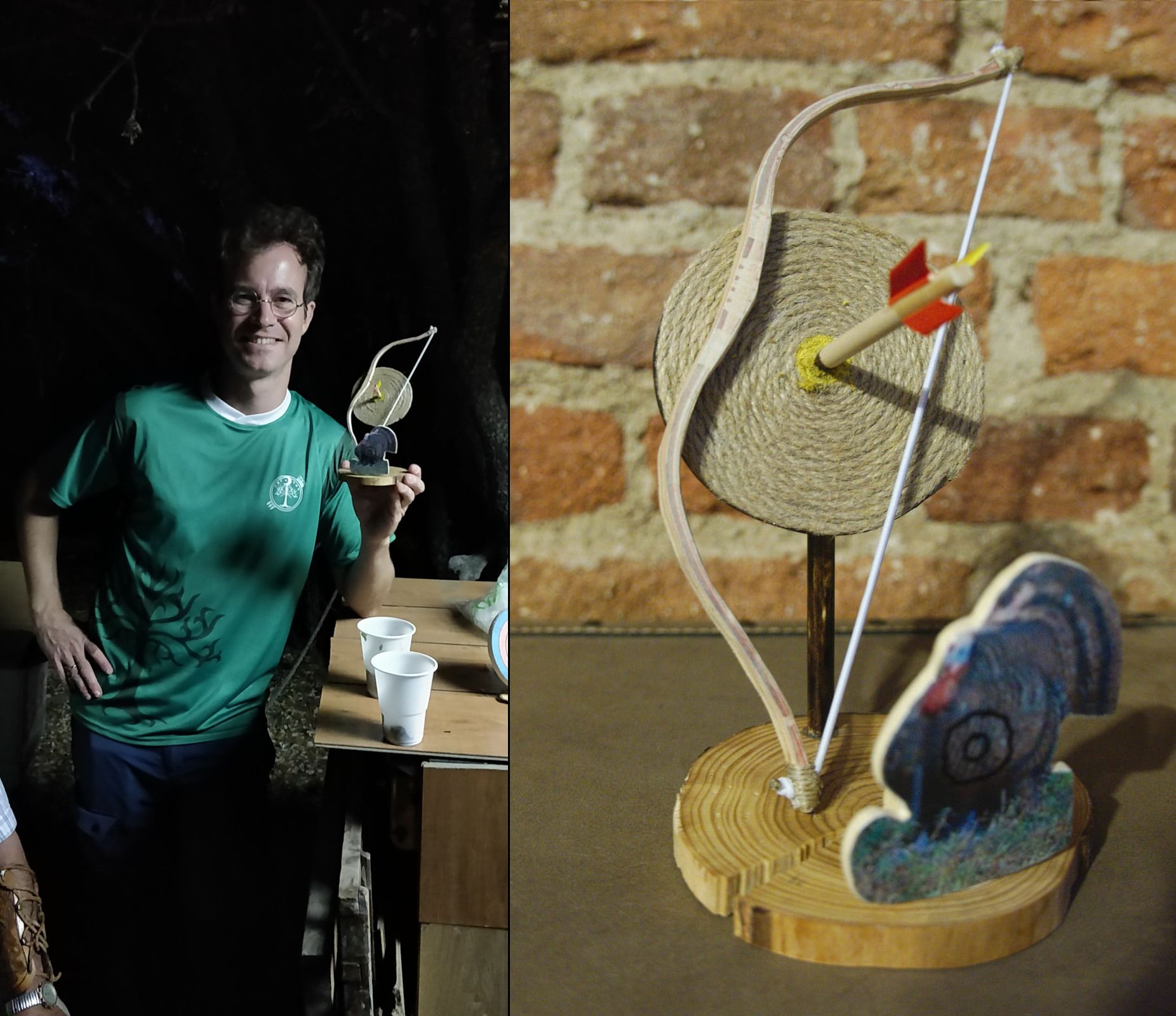 Para empezar nos quedamos encandilados con el trabajo manual hecho por César Sánchez con unos premios y trofeos que había preparado con muchísimo cariño y que aguardaban a sus afortunados poseedores más tarde. Había un montón de pequeños arquitos y luego trofeos con dianas y dianas 3D. Estaban merecidamente expuestos a la vista de todo el mundo en el campamento base.