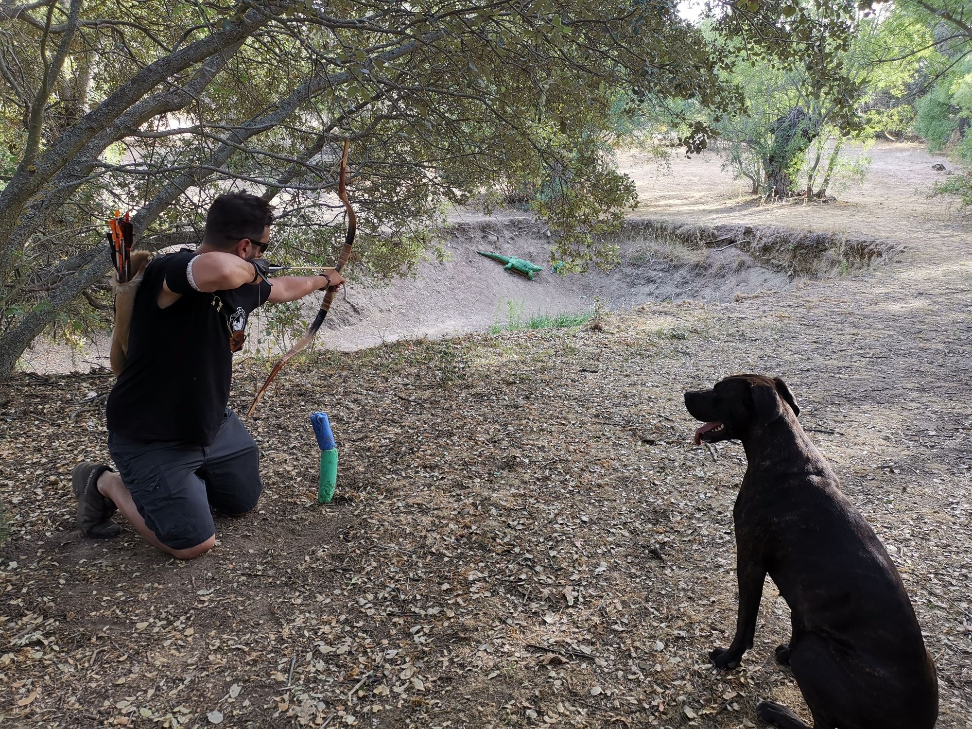 Tirar por la tarde siempre es un placer, yo lo prefiero a la mañana porque la luz va cayendo poco a poco en lugar de ir a más y una buena cena como colofón no tiene nada que envidiar a una comida al mediodía. En particular para una tirada de arcos históricos me resulta más atractivo, independientemente de que se me vaya a dar mejor o peor el día. Así, este V encuentro pasó a sábado y a la tarde en contraposición a las mañanas del domingo de los cuatro encuentros anteriores y creo que fue todo un acierto ¡hay que reivindicar los sábados por la tarde! Y de verdad que no lo digo solo por Angela y su alergia a "madrugar" en fin de semana, es que una tarde en el campo con un arco y flechas tiene la ventaja de que a medida que el sol cae y las sombras vuelven a alargarse, se desdibuja la época en la que estamos y podemos fantasear más fácilmente con el lugar en donde nos encontramos.