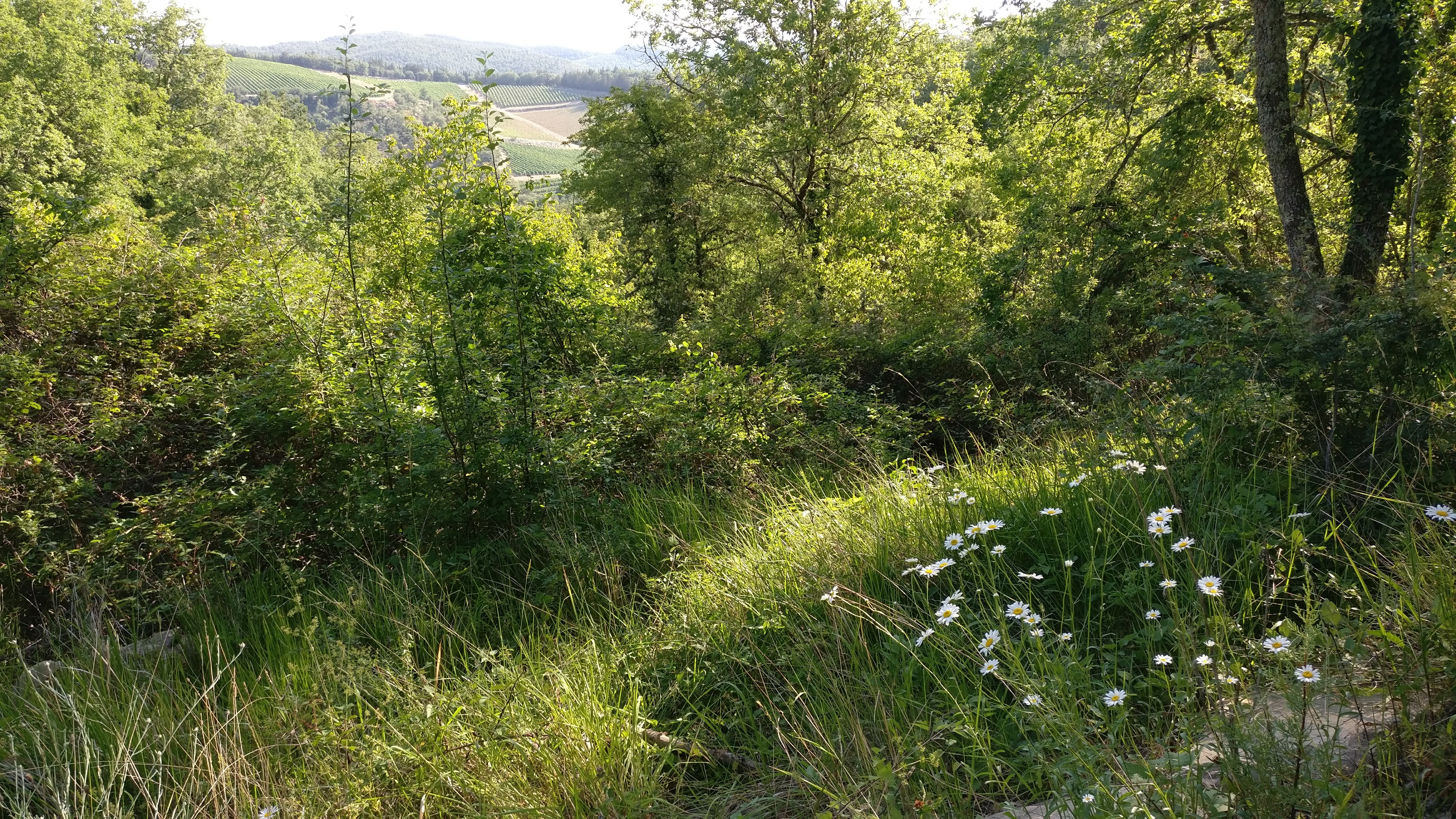 Este recorrido fue un cambio agradable porque en su mayor parte discurría por zonas arboladas muy tupidas y fáciles de transitar. Evidentemente, era todo subidas y bajadas con tiros con pendiente parecida. Salías de un grupo IV de dos erizos y llegabas a un grupo I a la máxima distancia de un jabalí en un tiro totalmente en picado y sin parapeto, sin tiempo para reaccionar. Precisamente la de los erizos la tenía en la cabeza. Angela me había dicho "ojalá no te toque en la piqueta de la izquierda cuando llegues a los erizos enanos porque hay una roca rompeflechas justo detrás". Cuando llegué a esa diana estaba en la piqueta de la derecha pero eso no significaba que fuera un tiro fácil. Aun sí, conseguí meter un "11" en la primera y un tocado en la segunda, así que fueron 15 puntos en una diana complicada. Ahora me arrepiento de no haber sacado una foto.