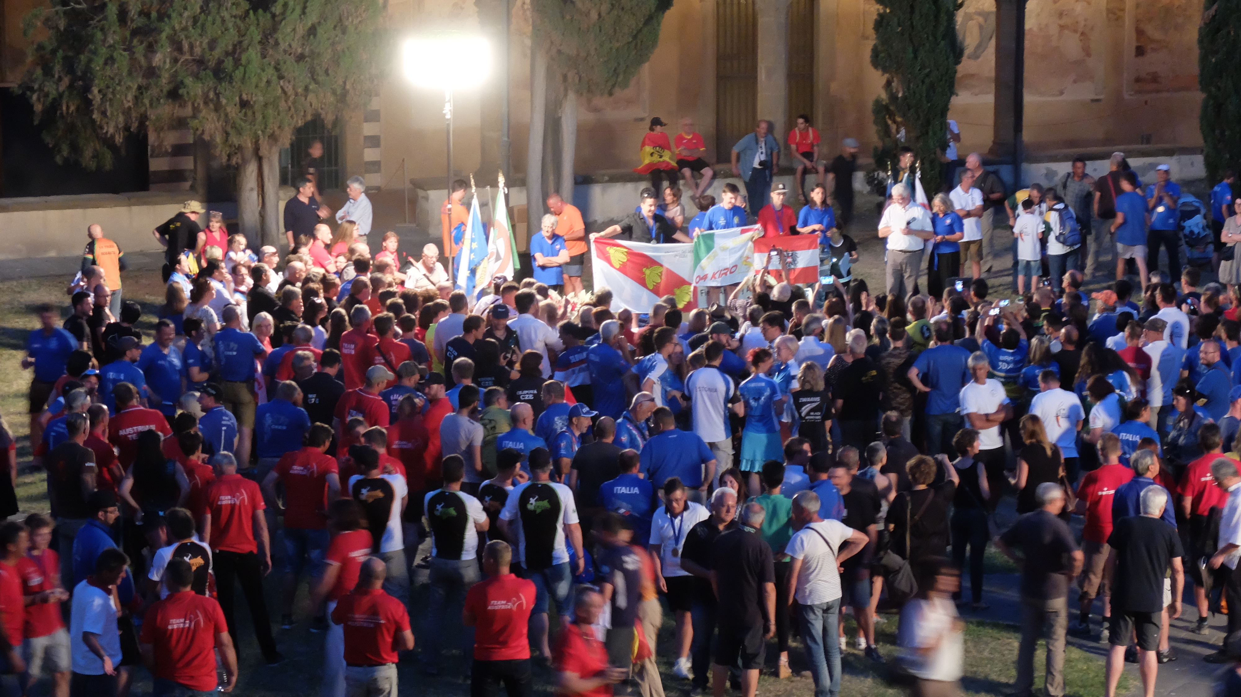 Durante la cena escuchamos más historias acerca de la mala organización del mundial por parte de la federación italiana y nos dimos cuenta de que habíamos visto la punta del iceberg pero es cierto que si la ceremonia de premios y la cena podrían haber sido una forma de acabar en positivo, más bien fue la constatación de que la organización italiana no había hecho un gran trabajo. Cuando ya nos levantamos para irnos, se esuchó desde una ventana de un piso superior, seguramente donde los servicios, un colérico "¡¡Organization Katastrophen!!" pero igual que la megafonía, no creo que nadie más allá de unos 20 metros lo oyera con claridad.