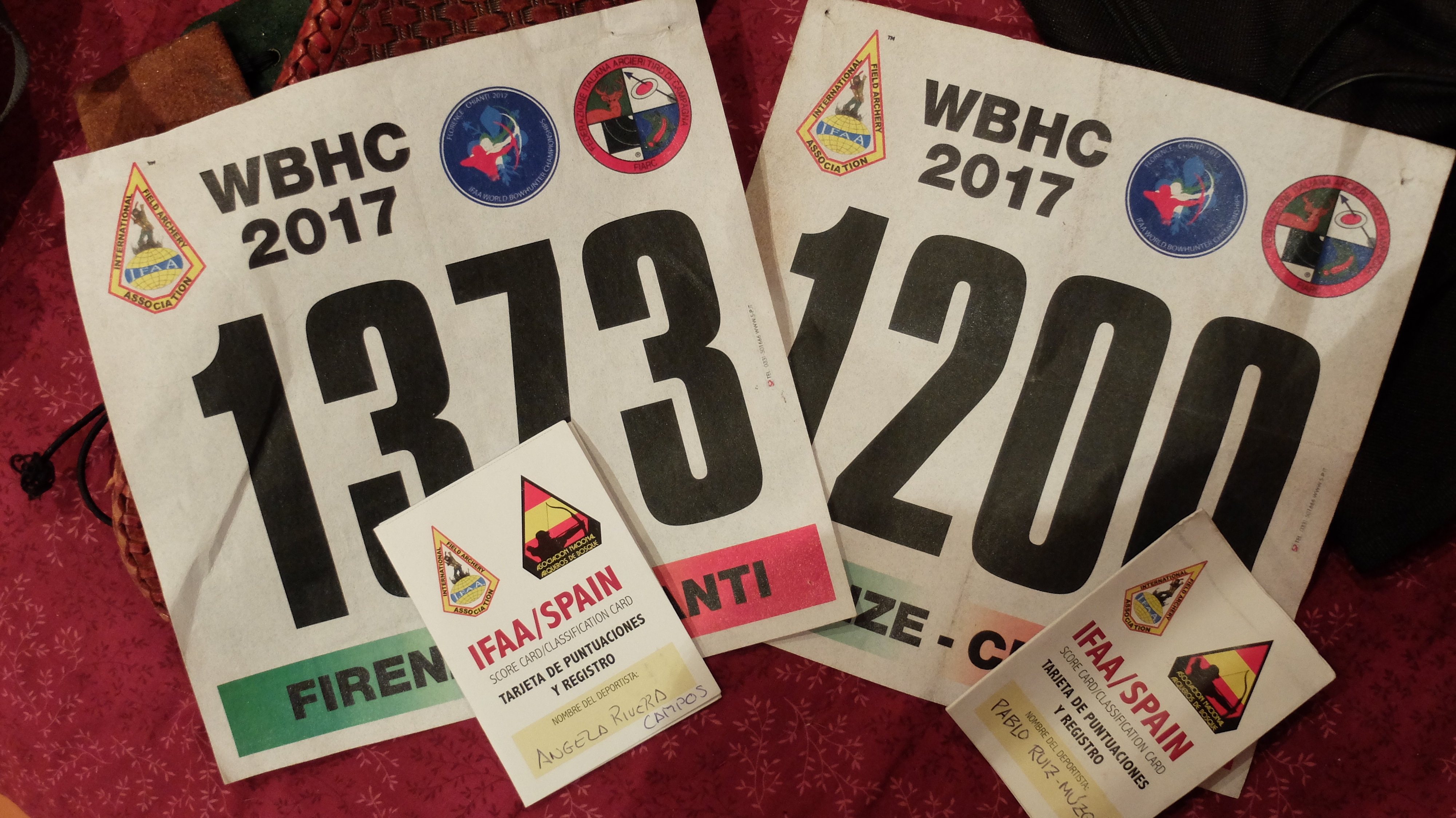 Esa noche, cuando consultamos la clasificación, Angela se había mantenido prácticamente igual gracias a esa remontada del final, es decir, en la mitad de tabla de unas sesenta arqueras, y yo había subido 13 puestos de golpe, llegando al 59 de 158. Si hubiéramos podido Angela y yo, habríamos decidido que el campeonato acabara en ese momento. Habíamos tenido un buen día, las sensaciones habían sido buenas, también las puntuaciones y el ranking reflejaba una situación inimaginable para nosotros meses atrás. Por parte de Angela, con su arco de 25 libras con dianas a las máximas distancias, demostrando la capacidad para jugar con la parábola de la flecha y por mi parte con apenas errores de lateralidad.