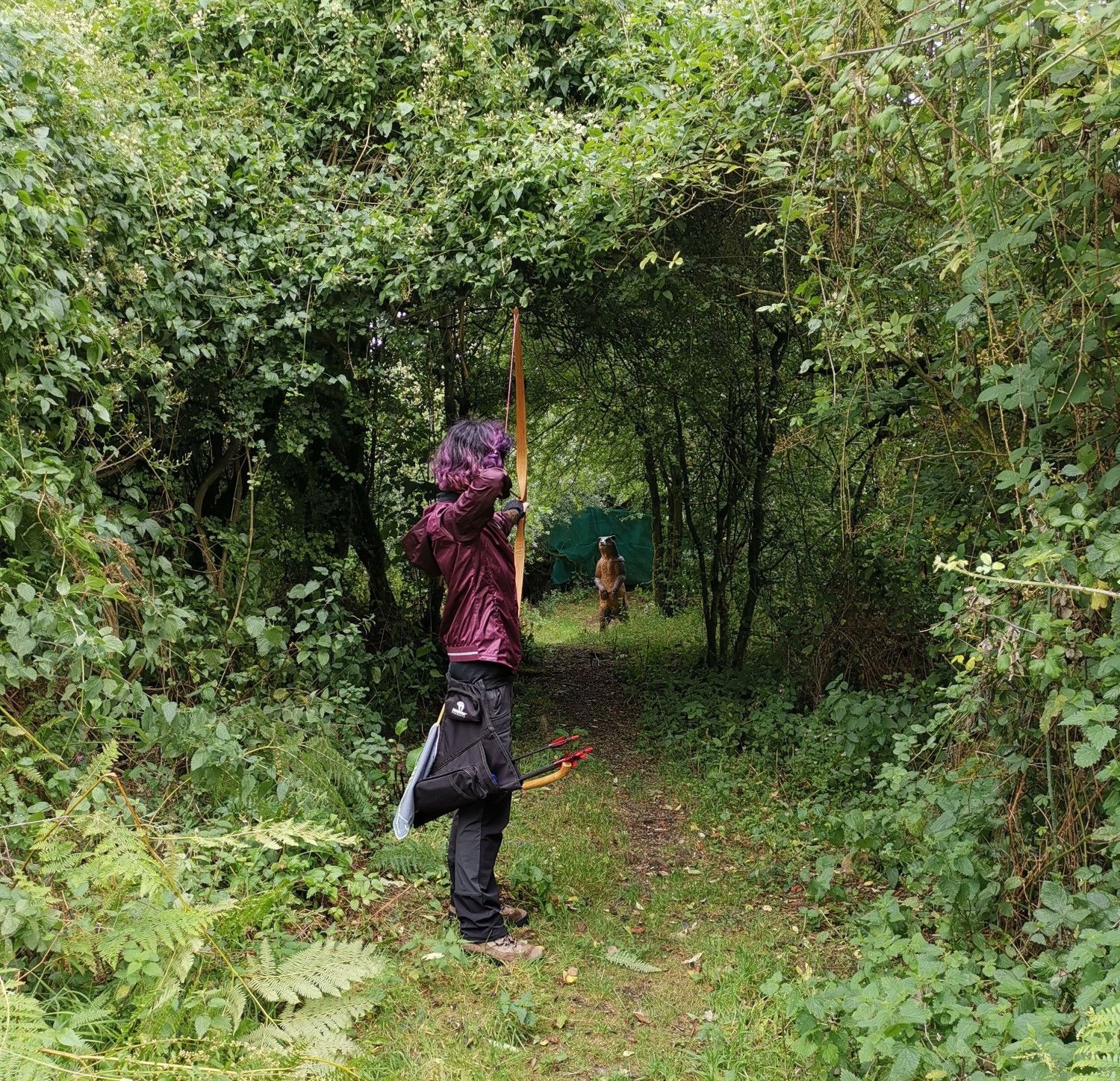 Conocemos bien este lugar, el campo privado Wye Valley Archery Centre, porque hemos estado unas cuantas veces. Es un campo privado regentado por Lee que tiene dos recorridos 3D en una zona preciosa. Pagas 15 libras y puedes estar todo el día en el campo. Nosotros lo que solemos hacer es completar un recorrido antes de comer, hacer una pausa para eso mismo en un pub a 10 min en coche y volver para hacer el otro recorrido. A veces hacemos dos veces seguidas el recorrido corto (18 dianas o así) pero en esta ocasión Angela no se encontraba del todo bien y nos atuvimos al plan base.