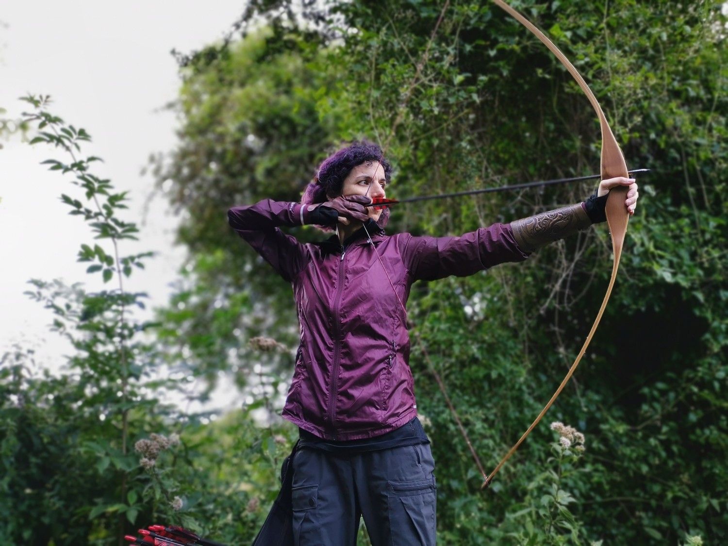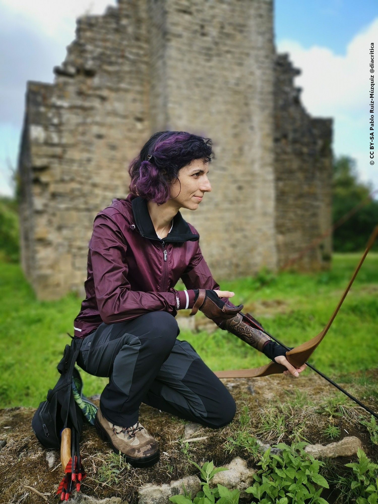 En concreto, yo llevo mi Falco Force de 35# y flechas Falco ya muy machacadas (a lo mejor tienen 3 ó 4 años). Angela lleva su Slick Stick de 25# y flechas de Falco también de hace al menos 3 años. La verdad es que podría ser el material principal de otras personas pero cuando llevas unos años, tu material "de descarte" empieza a ser algo bastante potente.