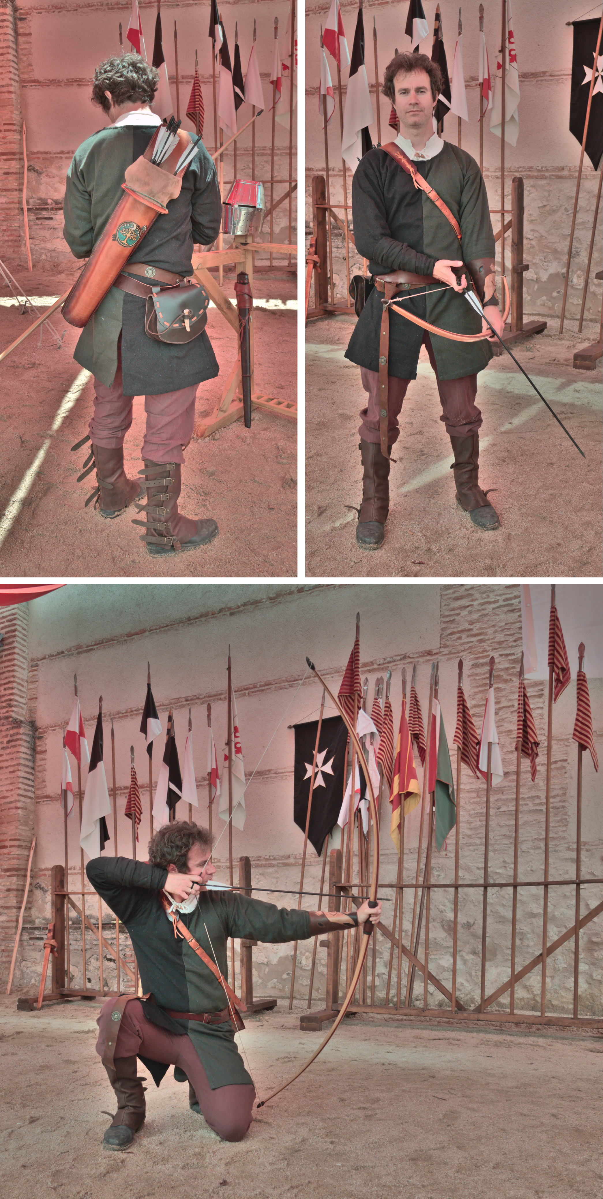 Nuestros atuendos estaban bastante bien, todo hay que decirlo. Evidentemente, estas tiradas no persiguen la recreación histórica (para empezar, los arcos pueden ser recurvos takedown) pero hay margen para trabajar un poco el cuero, el textil, los accesorios arqueriles, etc. El nivel máximo creo que lo pusieron los habituales de estas tiradas, Félix y Marisol, con atuendos muy profesionales.