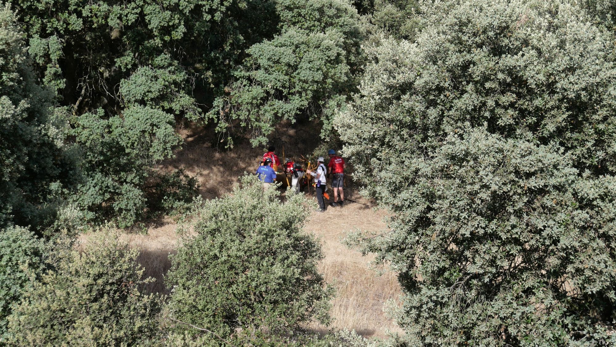 El segundo recorrido lo compartí con mi referente Pedro Antonio Martín Jorge, Fran Peña de nuevo y Dioni Martínez. En fin, no es por fardar pero menuda patrulla de nuevo. Sobre todo tuve la oportunidad de coincidir por primera vez con Dioni que compartió generoso su amplio conocimiento de la historia del 3D en España. Aquí, sin embargo, se me había agotado el "mojo". Aún no sé bien qué pasó. Quizá fuese el calor, que no llevo muy bien, la luz dura y sin sombra, el parón del descanso, el haberme zampado un bocadillo a destiempo o, simplemente, la inexperiencia de lidiar con dos recorridos 3D. Debo admitir que disfruté mucho el recorrido pero por todo menos por mi rendimiento en sí (que fue pobre casi exclusivamente por un problema de alturas). La zona, pegada al sembrado, es la que más me gusta, y la compañía resultó muy agradable y con sus dosis de socarronería. Sí que vivimos momentos un poco tensos cuando nos avisaron de la existencia de avisperos, algo que a Dioni le obligó a mantenerse especialmente vigilante debido a su alergia.